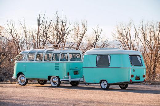 "RM-Sotheby's" izsolē 12.martā tiks piedāvāts 60.gadu ceļojumu transports – "VW T1 Samba" busiņš un "Caravan Eriba Puck" treileris.