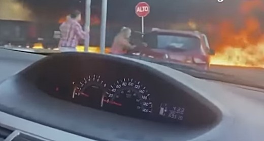 Meksikas pilsētā Agvaskaljentesā nofilmēts, kā kravas vilciens traucas cauri liesmām, liekot autobraucējiem bailēs pamest savas mašīnas.