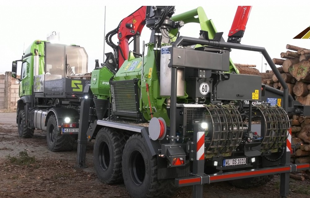 530 Zs Mercedes-Benz Arocs apvienots ar Heizohack koksnes smalcinātāju. Kravas auto īpašās iezīmes ir kabīne ar rotējošu sēdekli, 3 m² panorāmas logs aizmugurē, kas izgatavots no drošības stikla, aizmugurējā jūgvārpsta, dažādi hidrauliskie savienojumi un iespēja pielāgoties smalcinātājam, izmantojot īpašas vadības ierīces.