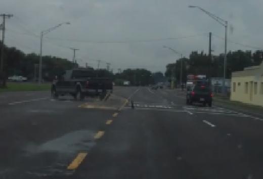 Video redzamā "Ford" pikapa vadītājs izvēlējās parādīt vidējo pirkstu pēc kura saslīdēja un diemžēl avarēja.