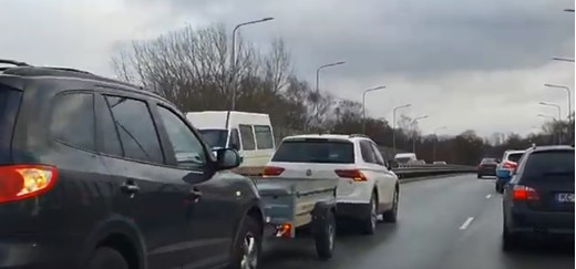 Avārijas apstākļus noskaidros policija. Iespējams, Hyundai vadītājs nav pamanījis, ka iedegas Volkswagen bremžu ugunis, iespējams, kāda cita iemesla dēļ novērsis uzmanību, taču tieši viņš izraisījis šo nelielo negadījumu ar savu auto ietriecoties Volkswagen vilktajā piekabē.