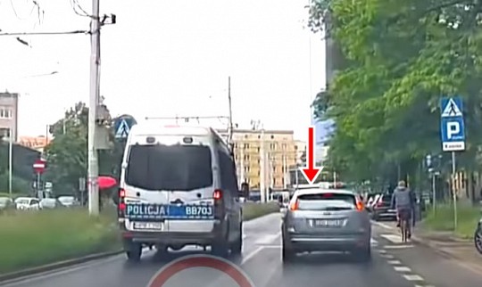 Braucot blakus policijas busiņam, Ford vadītājs nepiestāj pirms gājēju pārejas un nepalaiž gājējus. Likumsargi nekavējoši reaģē, panāk Ford un piespriež vadītājam 1500 zlotu (350 eiro) sodu un 15 soda punktus.