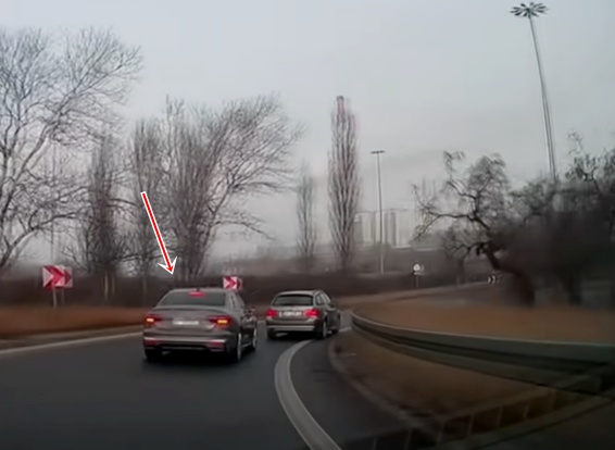 Nervozs Audi vadītājs izrāda savu neapmierinātību ar lēnāk, bet, iespējams, pēc noteikumiem braucošajiem, kā vien spēj - rausta stūri, mirkšķina gaismas, strauji paātrinās un bremzē, taču rezultātā nonāk aizmugurē pat šī video filmētājam.
