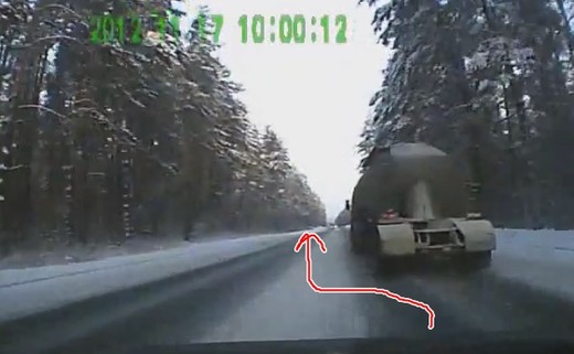Video autors uzsāk apdzīšanu, taču zaudē kontroli pār savu spēkratu un tikai brīnumainā kārtā izglābjas no sadursmes ar pretimbraucošajiem transportlīdzekļiem.