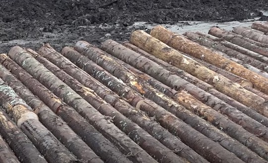 No senatnes aizgūts paņēmiens - Ērgļu pusē meža ceļu būvē no sīkbaļķiem (+ VIDEO)