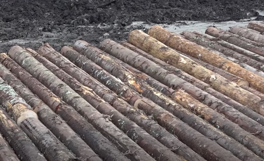 Izmantojot senu metodi, “Latvijas Valsts meži” Ērgļu pusē meža ceļu būvē no sīkbaļķiem. Šāds veids izvēlēts, jo ceļš iet pāri vietām ar plūstošu kūdras slāni, kas dziļumā sasniedz gandrīz piecus metrus, padarot citu ceļu veidu būvniecību neiespējamu. Ceļa būvētāji atzīst – šis ir smags darbs, bet reizē arī interesants, jo bieži šādus risinājumus Latvijā nevar sastapt.