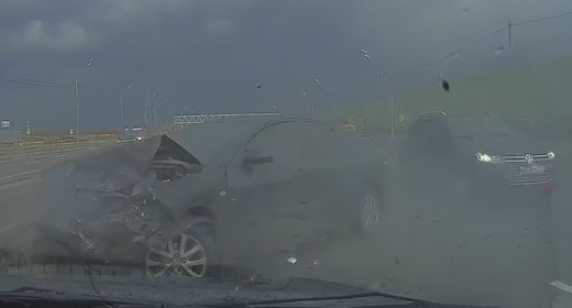 Uz ātrgaitas šosejas (izkritusi?) ceļa zīme kļūst par nopietnas avārijas iemeslu, kad uz tās uzbrauc Mazda un šoferis zaudē kontroli pār savu spēkratu.