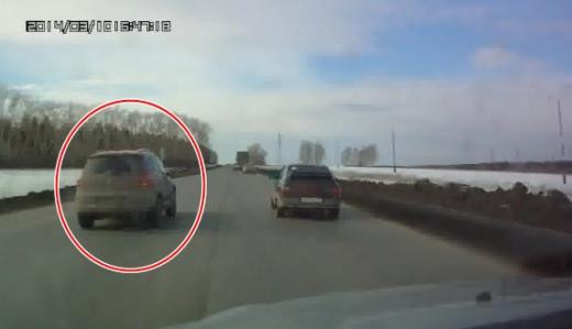 Universāla vadītājs, izvairoties no sadursmes ar automobiļiem, kas iebraukuši viņa joslā, nobrauc no ceļa un apmet kūleni.