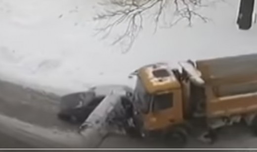 Sniega tīrītājs "savāc" vieglo automašīnu (+ VIDEO)