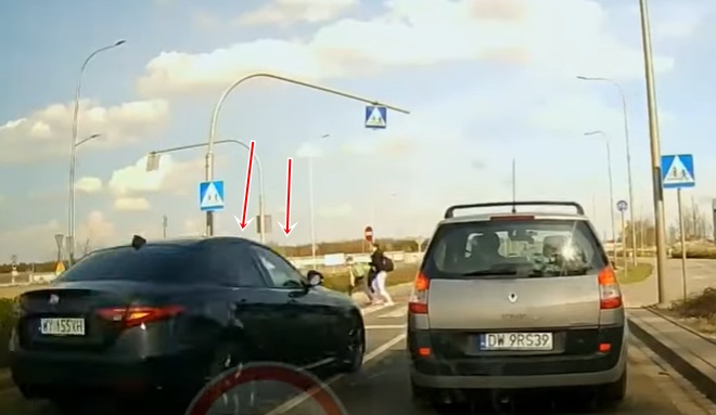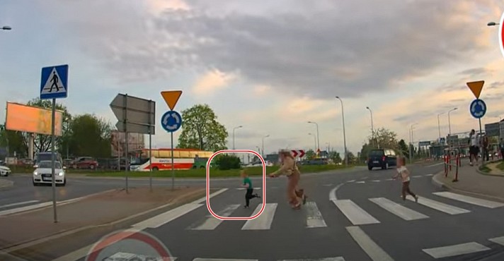 Veiklas kājas glābj no nāves - BMW gandrīz sabrauc māti un bērnu (+ VIDEO)