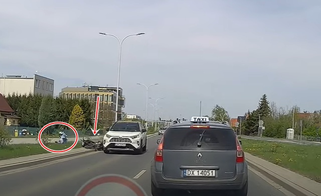 Nogrūž motociklistu no ceļa (+ VIDEO)