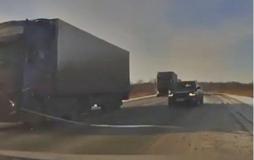 Kravas auto "atver vārtus uz pazemi"; vieglais tur iekrīt (+ VIDEO)