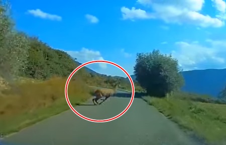 Tam vajag 1 sekundi - briedis pārskrien pāri ceļam priekšā automobilim (+ video)