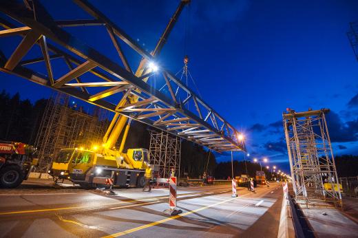 Naktī uz piektdienu pāri Jūrmalas šosejai tika montēta gājēju un velosipēdistu tilta laiduma konstrukcija (+ foto)