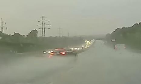 Kā uz ledus - Audi avarē spēcīga lietus laikā (+ VIDEO)