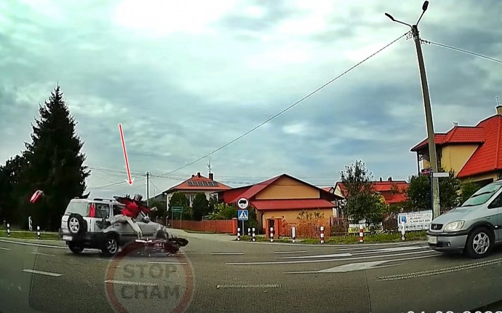 Sāpīgā taisnība - motociklists saduras ar automašīnu (+ VIDEO)