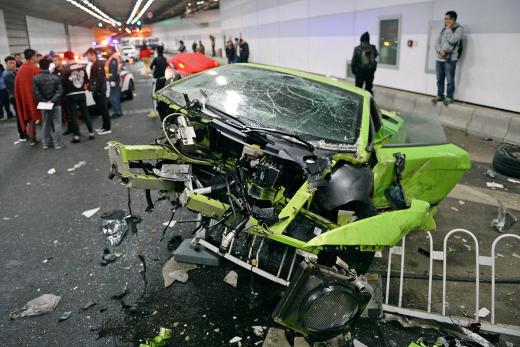 "Lamboghini" un "Ferrari" spēkošanās beidzas ar baisu avāriju (+ foto)
