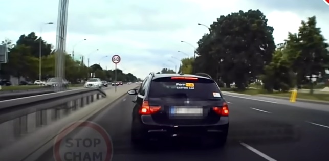 BMW vadītājs izceļas ar dīvainu uzlīmi aizmugures stiklā un sliktu uzvedību (+ VIDEO)