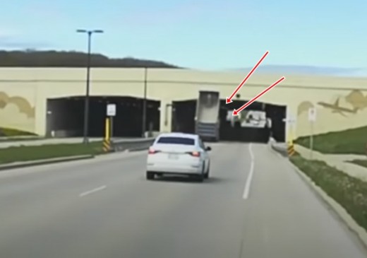 Vieglās automašīnas, visticamāk, jau labu laiku brauc aiz kravas auto, kura šoferis aizmirsis nolaist kravas kasti. Visi grib redzēt, kas notiks, kad kravinieks satiksies ar tiltu, tādēļ brīdinājums par bīstamo situāciju neseko, kaut gan laiks un izdevība pabrīdināt bija.