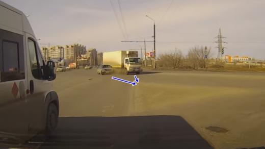 Vietas ir pietiekami, lai kreiso pagriezienu veiktu abi transportlīdzekļi, taču sadursme starp abiem notiek tik un tā.