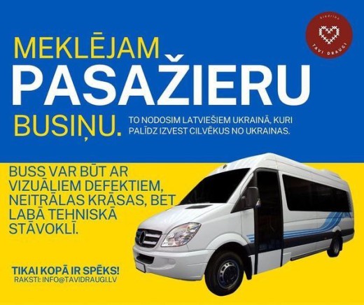 Biedrība Tavi draugi meklē kravas un pasažieru busiņu, kuru varētu izmantot tepat Latvijā.