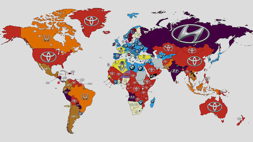 "Quickco" izpētījis, ka 2016.gadā iedzīvotāji visbiežāk interesējušies par “Toyota” markas automobiļiem – šāds rezultāts konstatēts 74 no sarakstā iekļautajām 193 valstīm. Otro vietu ieņem “BMW”, kas pirmajā vietā bijis 51 valstī, savukārt trešo ailīti ieņem korejiešu marka “Hyundai” par kuru visbiežāk interesējušies 17 valstīs, tostarp arī Krievijā.