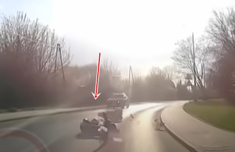 Motociklists ar savu draudzeni piedzīvo sāpīgu kritienu, taču tas vēl nav viss: policija izraksta sodu par apdzīšanu neatļautā vietā, atklājas, ka vadītājam nav tiesību, bet krītošā motocikla detaļas nodarījušas skādi pretimbraucošajam transportam.