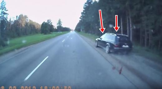 Steidzīgs "Audi" (?) vadītājs, riskējot ar savu un visu citu satiksmes dalībnieku dzīvību, apsteidz autobusu pa ceļa nomali. Laimīgā kārtā auto noturējās uz smilšainās grunts, taču, kas notiktu, ja spēkrata riteņi izslīdētu? Tieši šādiem autovadītājiem būtu vēlams noskatīties otru video, kas uzfilmēts Krievijā (brīdinām par nepatīkamiem skatiem!).