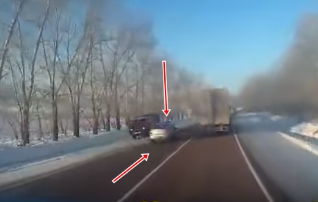 Policijas ekipāža uzsāk apdzīšanas manevru nepārskatāmā ceļa līkumā, gandrīz izraisa sadursmi ar pretimbraucošo transportlīdzekli un sadauza patruļauto pret kravas vilcēja piekabes sāniem.