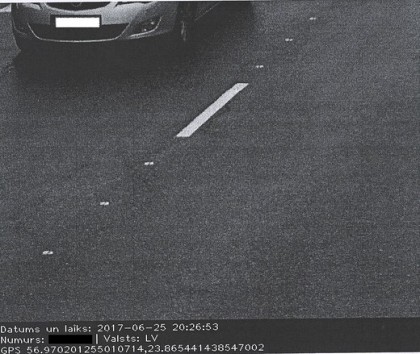Protokols papildināts ar zemāk redzamo pārkāpuma fotofiksāciju. Kaut arī pierādījumu iegūšanai Jūrmalā iebraucošie automobiļi tiek fiksēti ar visticamāk sertificētām ierīcēm, par protokolam pievienotajiem attēliem var diskutēt, vai tajos nepārprotami tiek fiksēta vieta, kur automobilis atrodas attēla uzņemšanas brīdī.