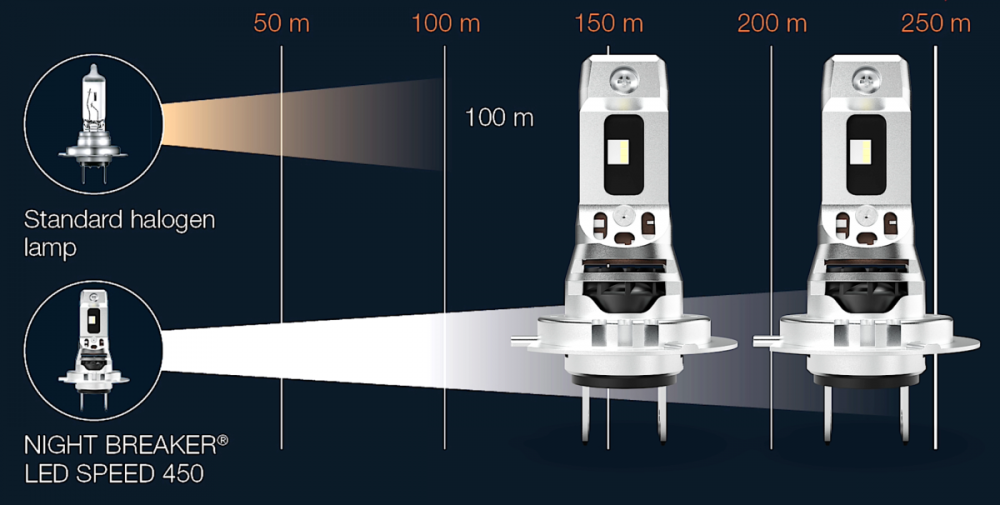 Mārtiņš Umbraško, Osram pārstāvis Baltijā: “Tas tāpēc, ka tām ir aktīvā dzesēšana jeb radiators. Nepieciešams adapteris un dažos gadījumos pats jauns vāciņš, jo oriģinālais vairs neder.” Taču Osram LED spuldzes progresē, un nu pieejams jauns produkts, kam nav nepieciešama papildus dzesēšana. “Šis ir pavisam jauns produkts,” saka M. Umbraško, “izmēros viens pret viens ar halogēna spuldzi. Night Breaker Speed vairs nebūs vajadzīgi speciāli adapteri vai vāciņi, tomēr joprojām var būt nepieciešami t.s. kļūdas noņēmēji.” Diemžēl arī jaunā tipa H7 LED spuldzei nepieciešama sertifikācija CSDD.