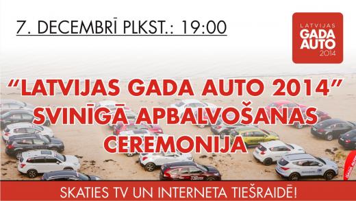 Šogad „Latvijas Gada auto 2014” apbalvošanas ceremoniju būs iespējams skatīties 7. decembrī plkst. 19:00 TV tiešraidē „Sportacentrs.com TV” 411. kanālā un interneta tiešraidē portālos: Delfi, iAuto.lv un La.lv.