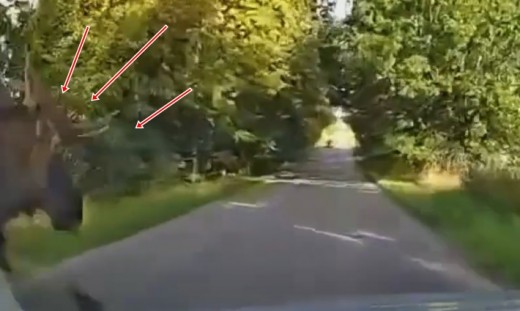 Vadītājs nepamana alni, kas jau dažas sekundes pirms sadursmes parādās kameras uztveršanas zonā. Notiek sadursme, taču, šķiet, ar laimīgu iznākumu abiem.