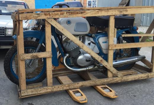 Tieši tā padomjlaikā rīkojās Iževskas motociklu rūpnīca, kas transportēšanai izmantoja improvizētu, no zāģmateriāliem pagatavotu kasti, kurā patērētājiem tos nogādāja ar dzelzceļa un auto transportu. Vienu šādu kasti 1976.gadā Českeskas apgabals valsts noteiktajā sadales kārtībā nodeva mežrūpnieku rīcībā. Motocikls bija paredzēts teritorijas apbraukāšanai un kontrolei, taču mežsarga rīcībā bija labi uzturēts "IŽ Jupiter-2" un jauno tehniku viņš izmantot nesteidzās.