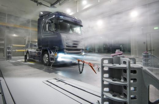 Viens no vadošajiem kravas transportlīdzekļu ražotājiem Eiropā „Scania” savā pētniecības un inovāciju centrā Zviedrijā ir izveidojis klimatisko vēja tuneli, kas pēc tā aprīkojuma un testu iespējām ir Eiropā labākais klimatiskais vēja tunelis pilnizmēra kravas automobiļu un autobusu testēšanai.