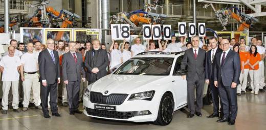 Aizvadītajā nedēļā no "Škod konveijera Kvasinas rūpnīcā nobrauca jubilejas eksemplārs – "Candy" baltas krāsas "Superb Combi" universāls, kas kļuva par 18 miljono automobili, ko izgatavojusi čehu autobūves kompānija.