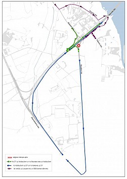 Darbu veicējiem uzdots izvietot transportlīdzekļu apbraucamo ceļu norādes.