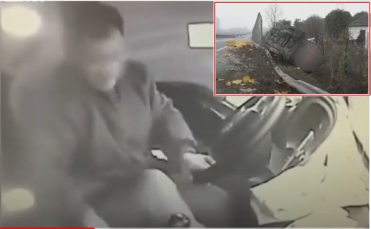 Divi kravas auto šoferi cenšas samainīties pie stūres, kamēr automobilis ir gaitā, taču tā nepārprotami ir slikta ideja.