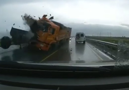 Priekšā braucošais kravas auto nolemj apbraukt uz brauktuves apstājušos busiņu un izraisa smagu sadursmi ar pretim braucošo transportu (no 0:30).