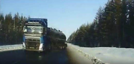 Glābjoties no pretimbraucošā kravinieka piekabes, vadītājs spiests iebraukt grāvī (no 2:40).