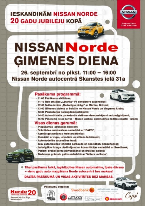 Vienlaikus kopā ieskandināsim "Nissan" oficiālā pārstāvja Latvijā "Norde" 20 gadu jubileju.