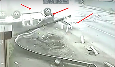 Video novērošanas kameras fiksē brīdi, kad uz Ļeņingradas šosejas pie veikala "Автошок" (Autošoks) pikaps "Nissan Navara" ietriecas ceļa nožogojuma barjerās un nogāž (elektrības?) stabu.