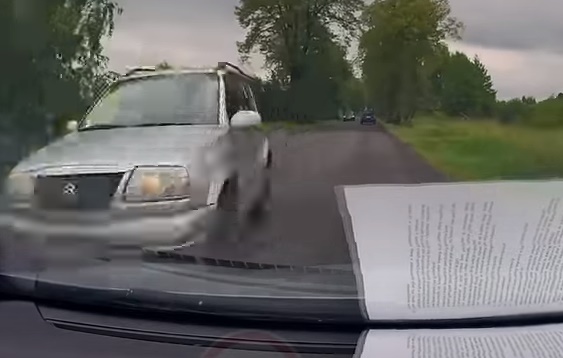Filmētājam sānos ietriecas pretimbraucošais Suzuki. Vainīgais skaidro, ka viņa auto sabloķējusies stūre, taču filmētājam ir versija par telefonu.