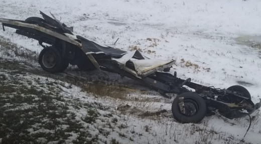 Rāmis un riteņi ir tas, kas palicis pāri pēc Gazeļ furgona sadursmes ar MAN. Tiek ziņots, ka Gazeļ šoferis gājis bojā.