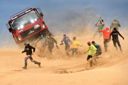 Rallijreida laikā fotožurnālisti atrodas bīstami tuvu sporta kravas auto, kas cenšas uzbraukt smilšu kāpā. Kad smilšu vaļņa galā parādās "MAZ," viens no viņiem paklūp un vairākas tonnas smagais kravinieks pārbrauc tam pāri. Sacīkste tiek apturēta un pēc smagi savainotā vīrieša ierodas glābēju helikopters. Šobrīd zināms, ka par viņa dzīvību cīnās Astrahaņas mediķi.