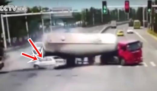 Traģiska avārija Ķīnā - degvielas vedējs uzgāžas vieglajam (+ video)
