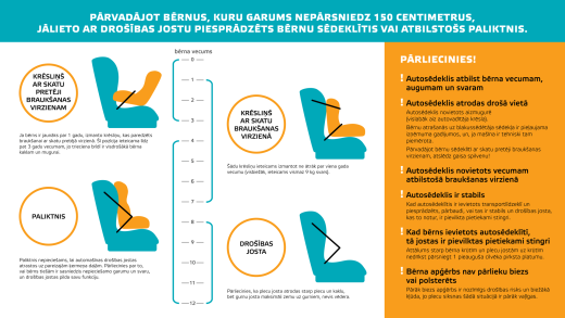 Tāpat ir vērts atcerēties formulu 150x12. Tā ir bērna drošības formula automašīnā. Proti, 150 nozīmē auguma garumu centimetros, bet 12 – bērna vecumu, līdz kuram iesaka lietot sēdeklīti vai paliktnīti.