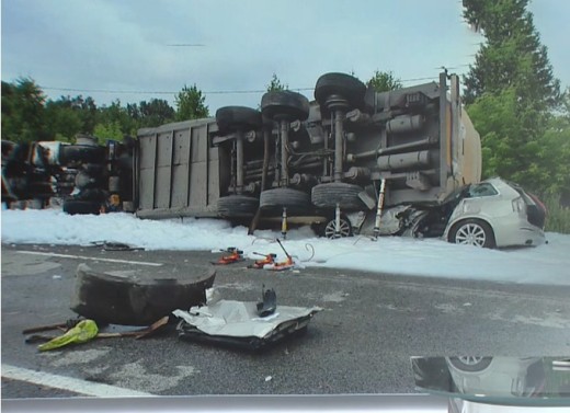 Tā izmeklēšanā noskaidrojusi Valsts policija. Automašīnas “Crysler Sebring” vadītāja pārgalvīgi apdzina kravas auto, sadūrās gan ar to, gan pretējā virzienā braucošu auto cisternu, tādējādi izraisot vēl vairāku transportlīdzekļu sadursmi.