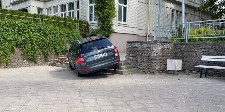 Treniņš auto triālā? - Škoda "Bolt" cenšas uzbraukt pa kāpnēm Jūrmalā (+ VIDEO)