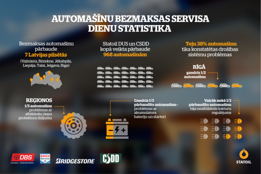 Septiņās Latvijas lielākajās pilsētās aprīļa beigās un maija sākumā norisinājās īpaša akcija – Servisa diena, kurā bez maksas tika pārbaudīta gandrīz 1000 automašīnu atbilstība drošas satiksmes prasībām.